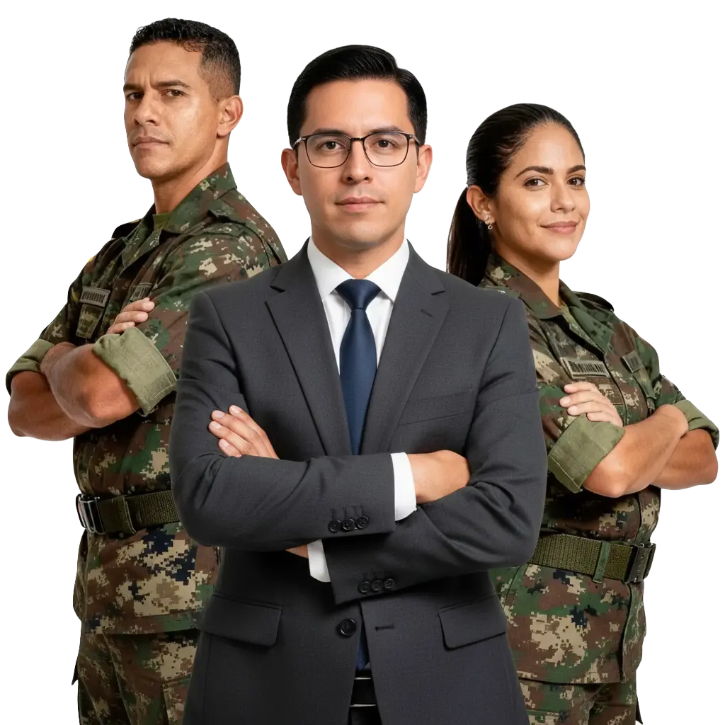 Somos una firma jurídica creada para miembros de las fuerzas militares, Policías y funcionarios del sector defensa, activos o retirados.